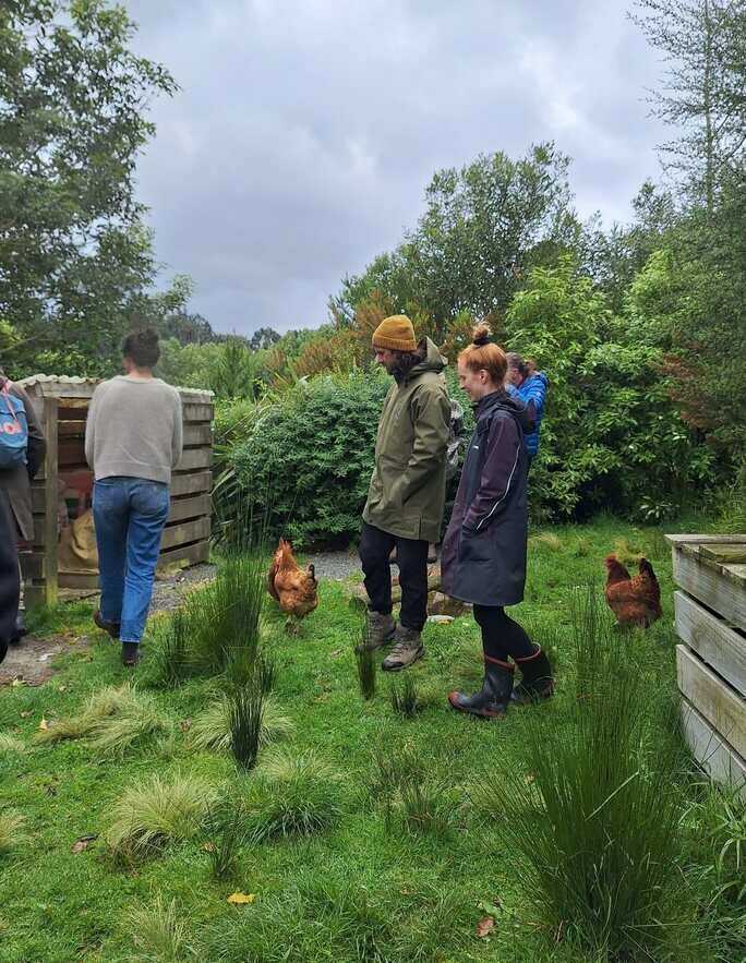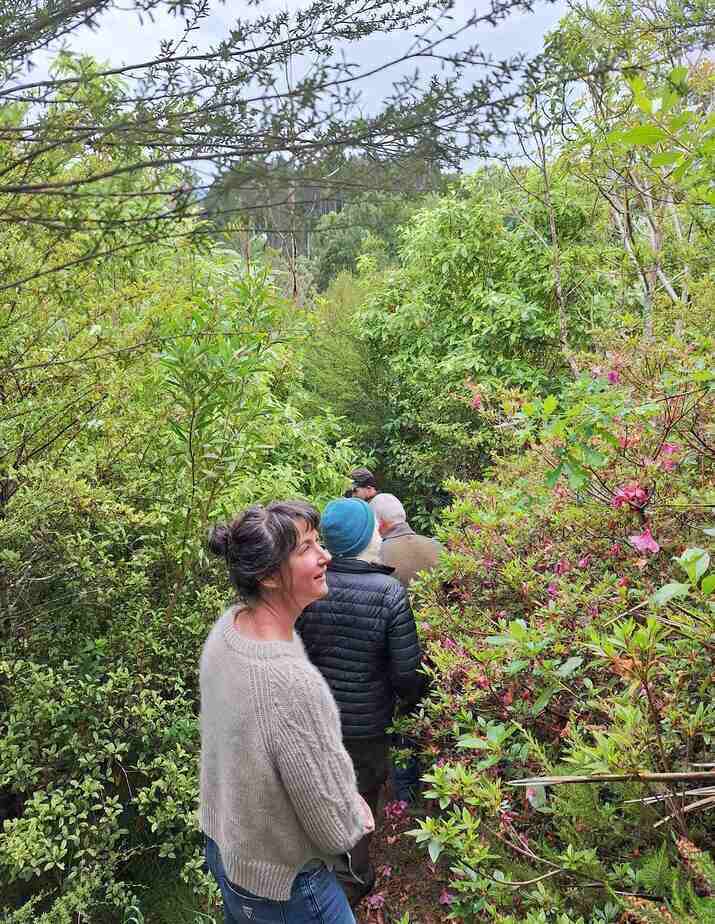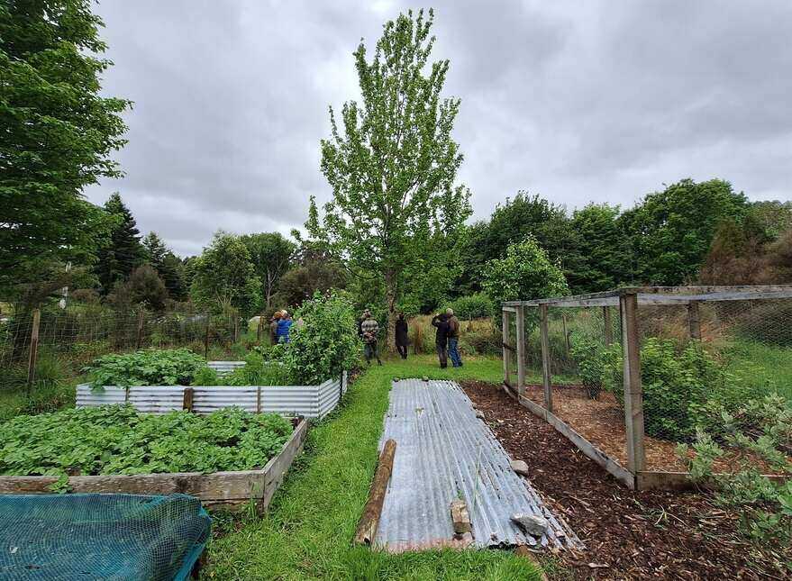 We spent the day wandering the 3.5-acre property, taking in the varying landscapes — from the temperate hilltop gardens to the cool timber areas and the humid wetlands. Mary Beth and Tony shared their journey of transformation, explaining how they’ve used permaculture principles to guide their vision and decisions. They described the importance of "spending a lot of time unlearning what our culture has taught us”, and focussing on ‘sufficiency not excess’. It is incredible to see how the land has evolved into a habitat for birds, insects, and lizards, and how the family now enjoys the fruits of their labor—berries, apples, pears, stone fruit, timber, eggs and an abundance of organic vegetables.