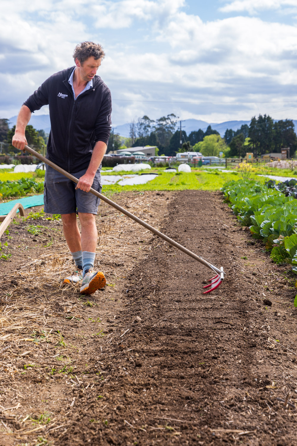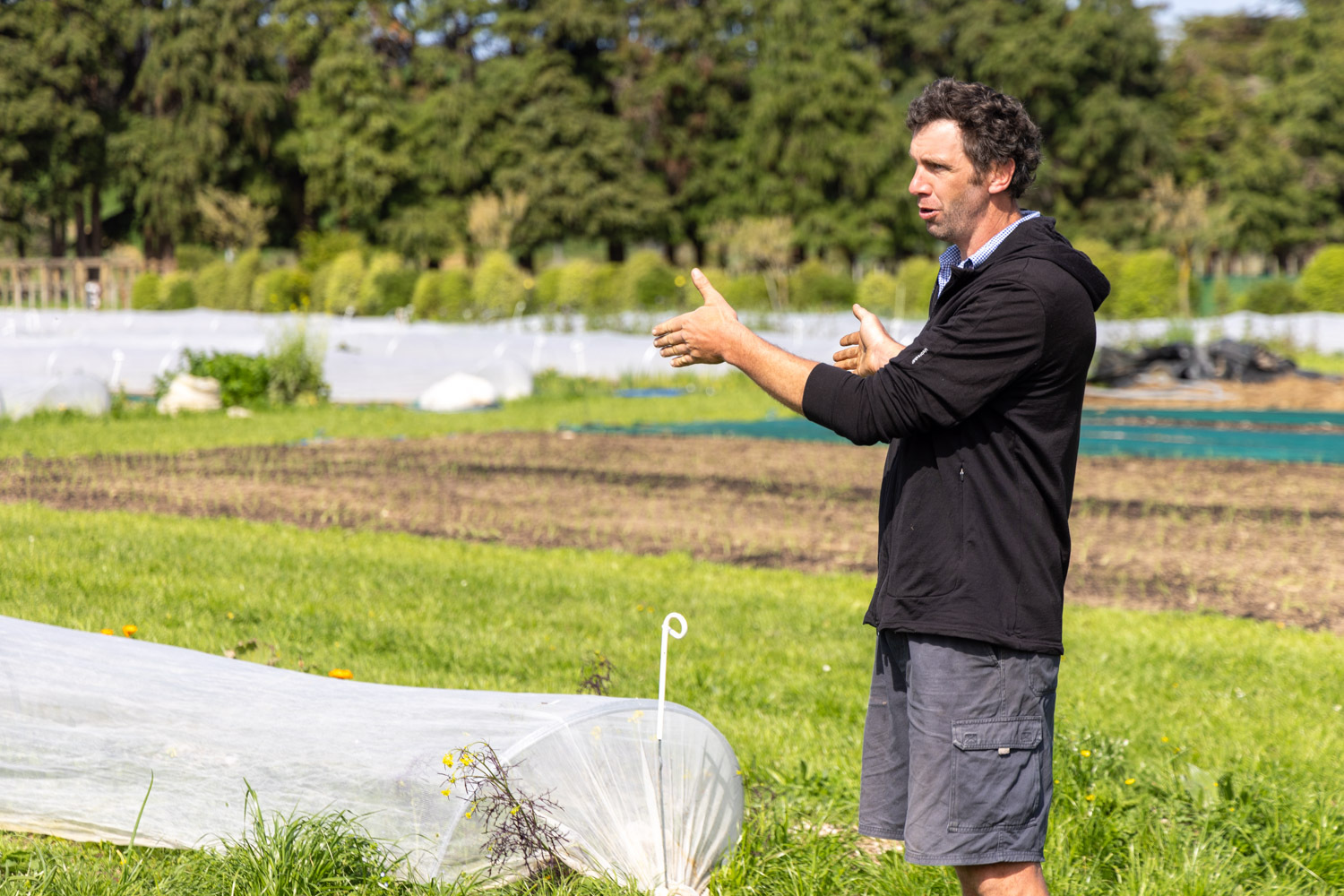 After learning about how it all began, we set off on a tour of the market garden, guided by gardener lead Cam Dixon, who is one of three farmers caring for the market garden. The 0.8HA area has been divided into 25 beds, which were all in different stages of growth. Bringing vitality back to the soil, which had previously been sprayed with DDT, has been their priority. Now the garden provides abundant kai for their on-site Farm Shop and they are working towards organic certification.