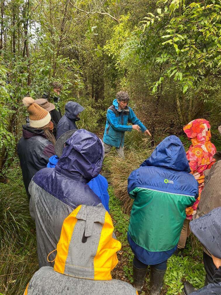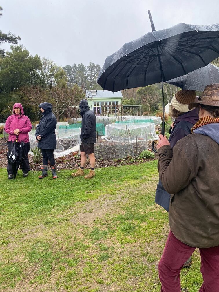 On Sunday 18th August we gathered with 15 participants at Garry and Ali Fosters old country school house in the pouring rain. However, many of us who traveled there saw the magnificent rainbow that seemed to follow us for the day. A small community of 5 adults and 1 child live in the 2 houses and a tiny house on 2.4 acres. After being welcomed we made the most of a short dry patch with a bit of light trying to shine through the clouds, and went for a walk around the property first.
